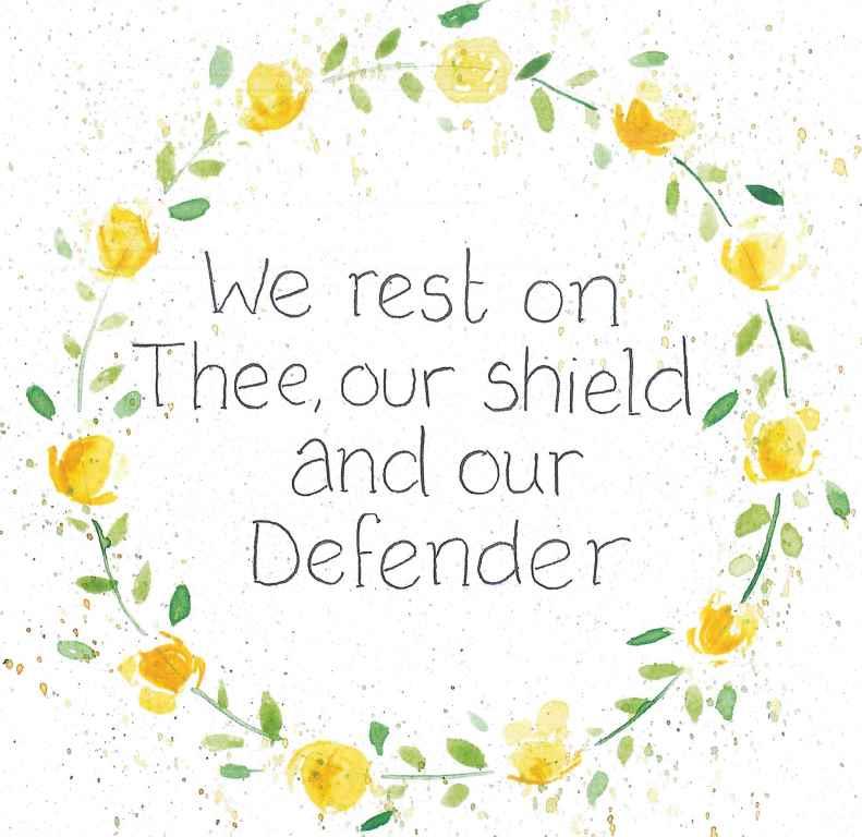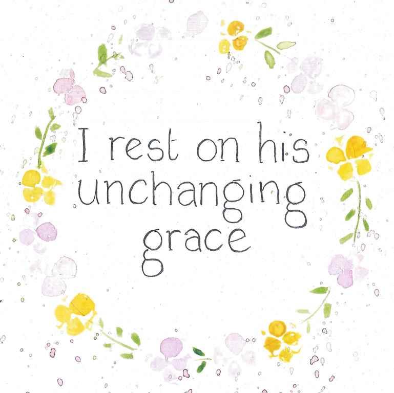 Pack of 10 quality square cards, 133mm x 133mm, blank inside. Each design is printed from original artwork and has a line from a well-known hymn.
