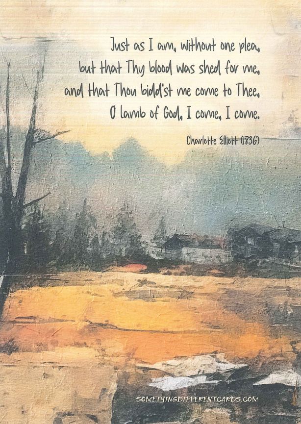 Side 2: Just as I am, without one plea, but that Thy blood was shed for me, and that Thou bidd’st me come to Thee, O Lamb of God, I come, I come. Charlotte Elliott (1836)