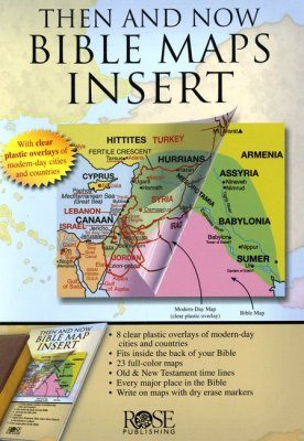 This incredible full color 44-page Bible atlas has clear plastic overlays of modern-day cities and countries. Fits in the back of your Bible or in your Bible cover.